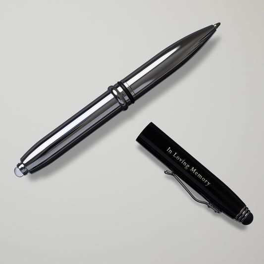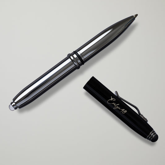 Black and Silver Luxury Pen with Stylus and Flashlight